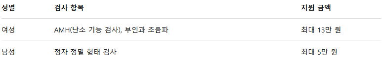 - 나이대별 최대 3회까지 검사 가능 (AMH·정자검사 포함)