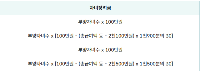 자녀장려금은 자녀 수에 따라 최대 금액이 정해지며, 소득에 따라 차등 지급됩니다.