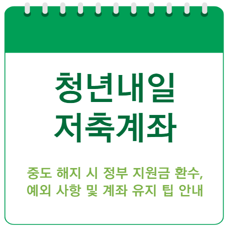 청년내일저축계좌는 3년간 근로활동과 저축을 유지하면 정부 지원금을 받을 수 있는 제도입니다. 그러나 중도 해지 시 다음과 같은 불이익이 발생할 수 있습니다: