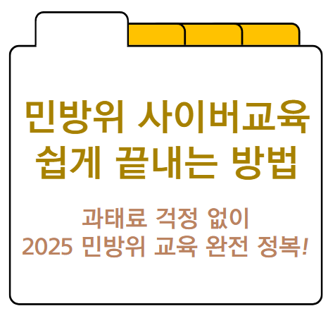 교육 자체는 어렵지 않지만, 놓치면 시간과 돈을 모두 잃을 수 있습니다. 간단한 인증과 영상 수강만으로 이수할 수 있는 민방위 사이버교육, 미루지 말고 지금 바로 완료하시기 바랍니다.